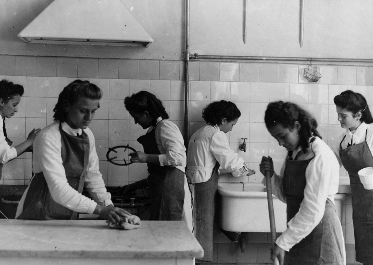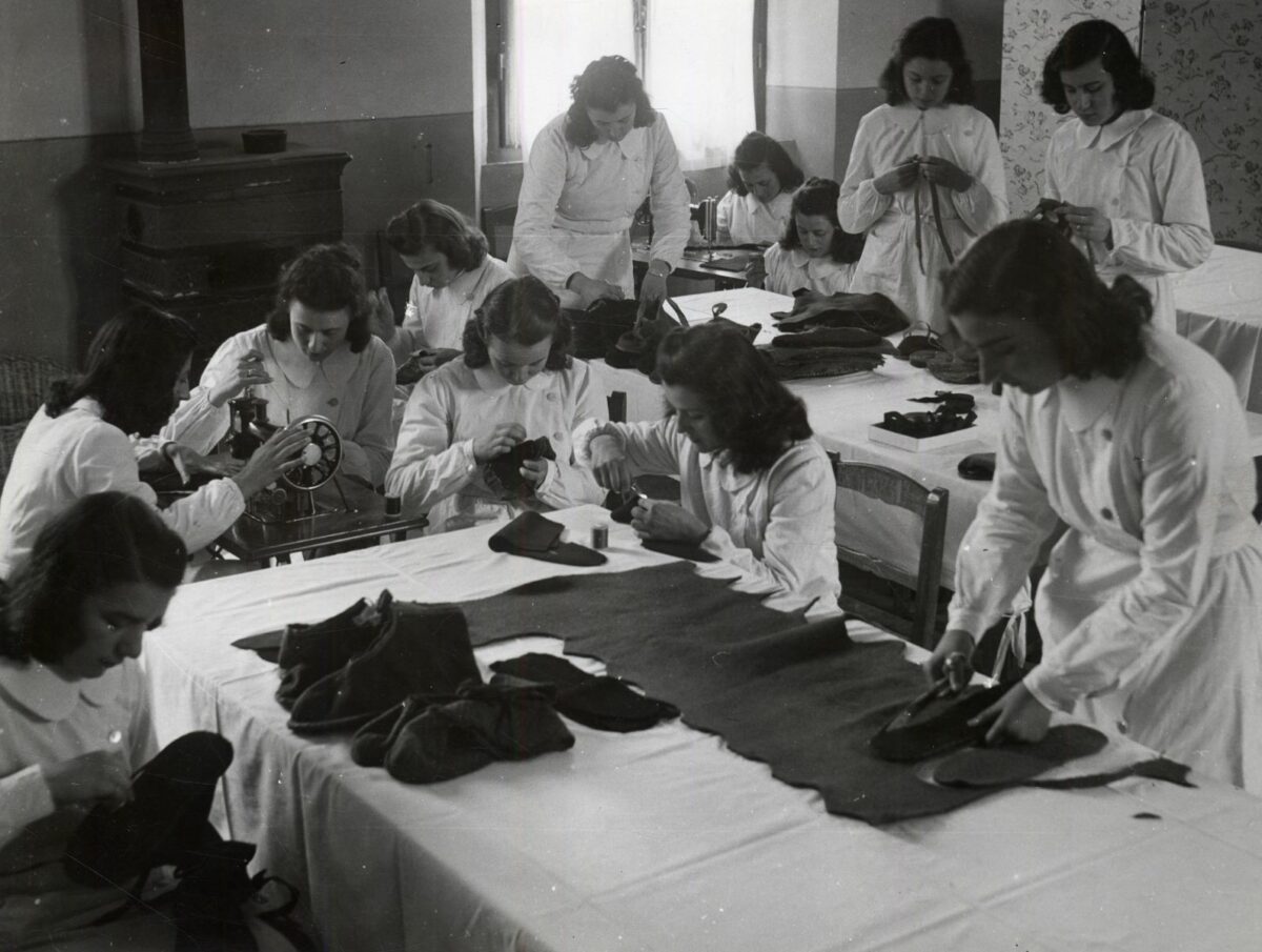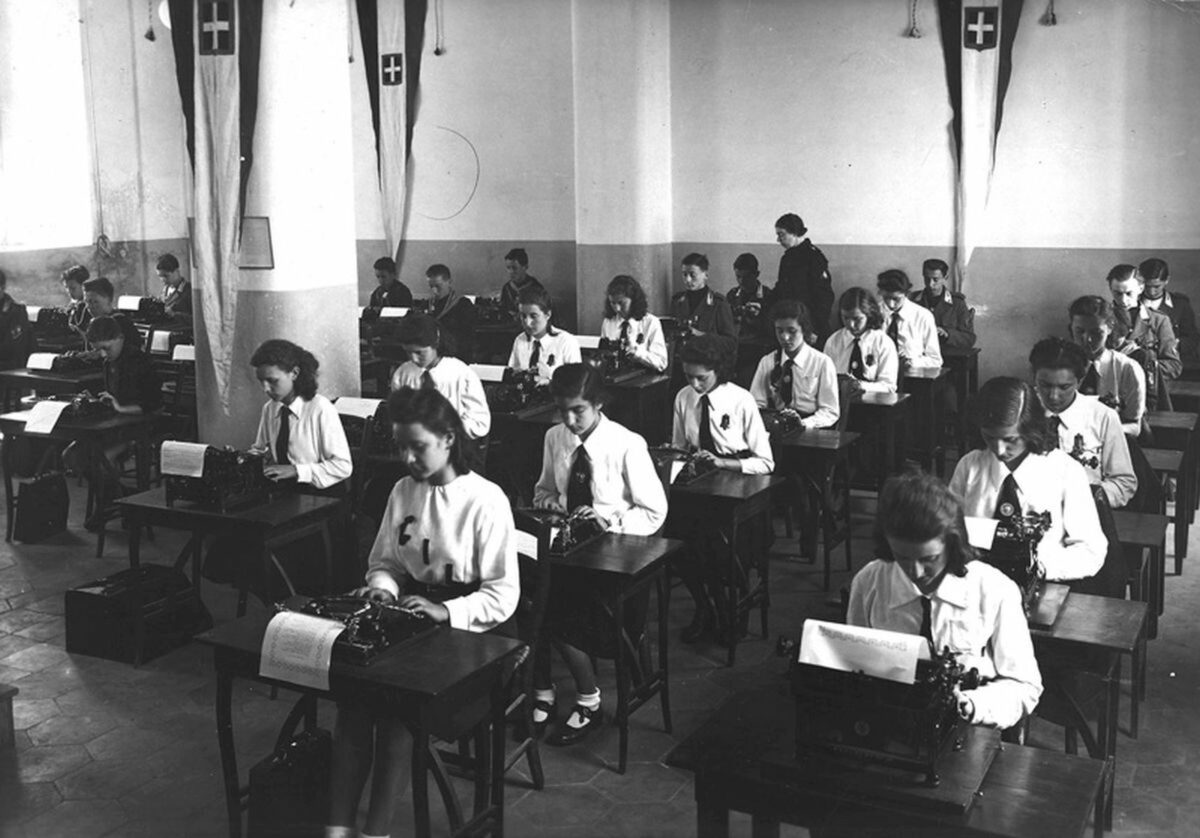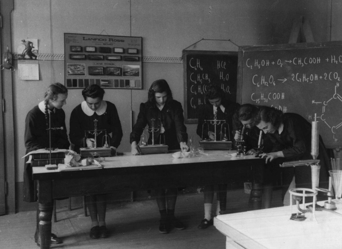 Il Fascismo utilizzò i ruoli di genere tradizionalmente radicati nella cultura italiana, rafforzando così un sistema penalizzante per la posizione sociale della donna. Durante l’autarchia (1935-1940), l’istruzione tecnica si orientò verso attività teorico-pratiche destinate a formare personale specializzato italiano nei settori chimico-merceologico, zootecnico e agrario. Parallelamente, i curricula femminili continuavano a privilegiare specializzazioni considerate propriamente muliebri quali cucito, tessitura, assistenza medicale e per l’infanzia, perpetuando una concezione biologicamente determinista. Queste competenze rimanevano confinate entro una presunta “natura della donna” subordinata alle attività maschili. Le necessità belliche degli anni Trenta-Quaranta posero in contraddizione questa ideologia: il richiamo al fronte della popolazione maschile determinò una massiccia mobilitazione delle lavoratrici nell’industria bellica, mettendo in crisi i presupposti gerarchizzanti della formazione destinata alle studentesse.